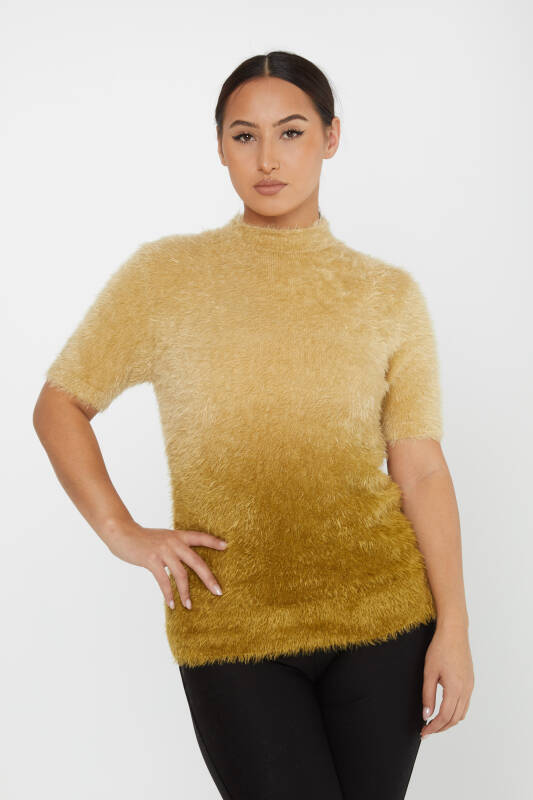 أنجورا تريكو بأكمام قصيرة وياقة واقفة زعفراني - 31014 | كازي (مجموعة من 3 S-M-L)