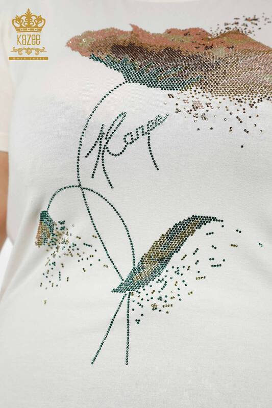 بلوزة نسائية - بنقشة زهور - مطرزة بالحجر الملون - 78924 | كازي