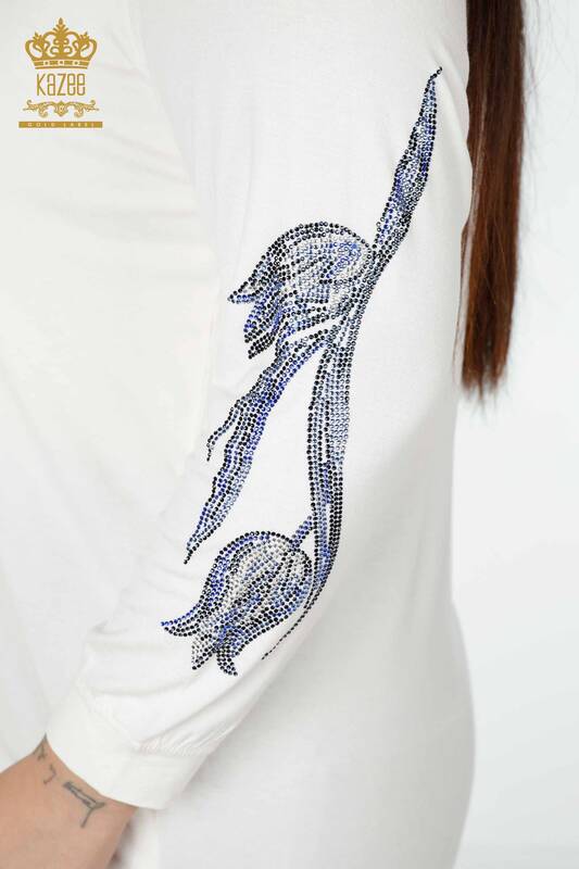 بلوزة نسائية بالجملة مطرزة بأحجار ملونة وبنمط زهور بيج فاتح - 77908 | كازي