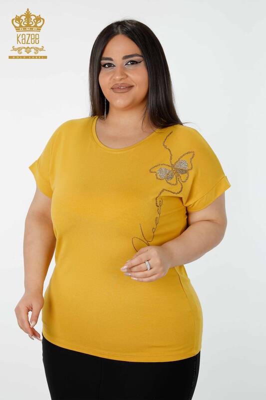 بلوزة نسائية - بالجملة مطرزة بأحجار الفراشة والزعفران - 78956 | كازي