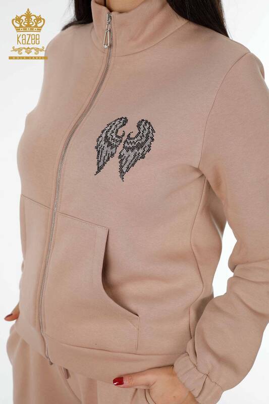 بدلة رياضية نسائية للبيع بالجملة بنمط جناح الملاك حجر كريستال مطرز مينك - 17466 | كازي