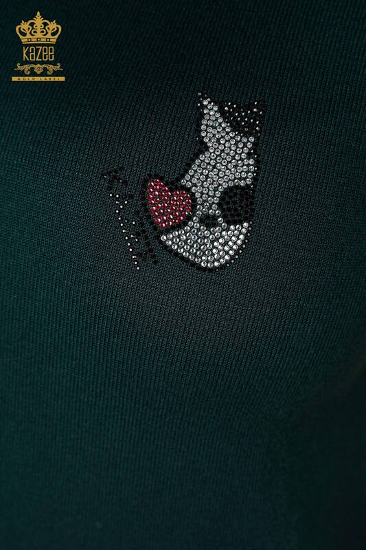 ملابس تريكو نسائية بالجملة مزخرفة بأحجار بدون أكمام مطرزة باللون الأخضر الداكن - 16902 | كازي