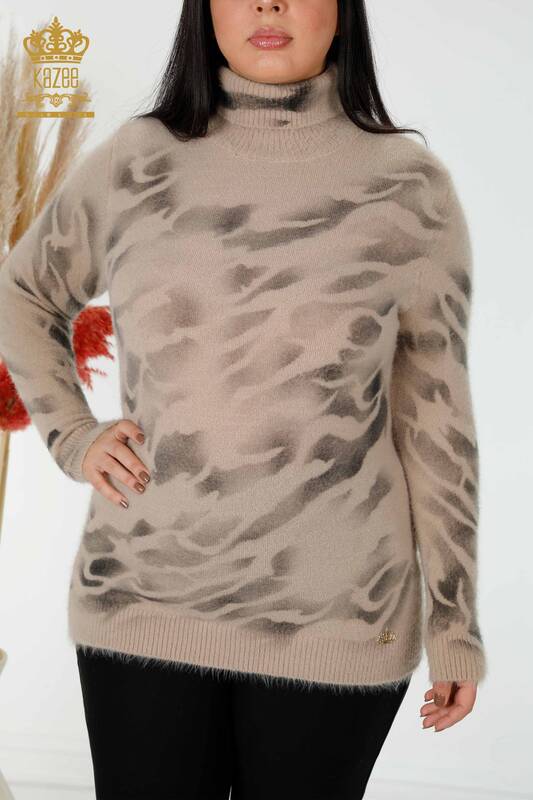 كنزة تريكو نسائية بالجملة شعار أنجورا منقوشة بيج - 18990 | كازي