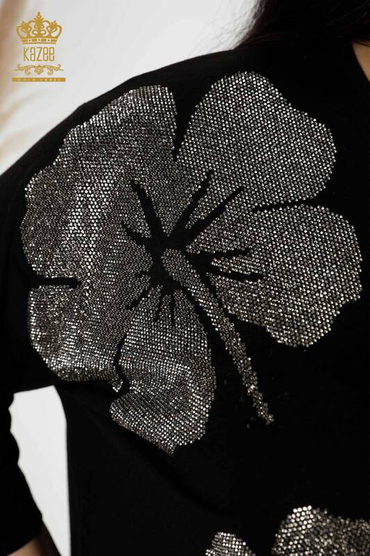 بلوزة نسائية بالجملة مطرزة بأحجار الكريستال باللون الأسود - 78990 | كازي
