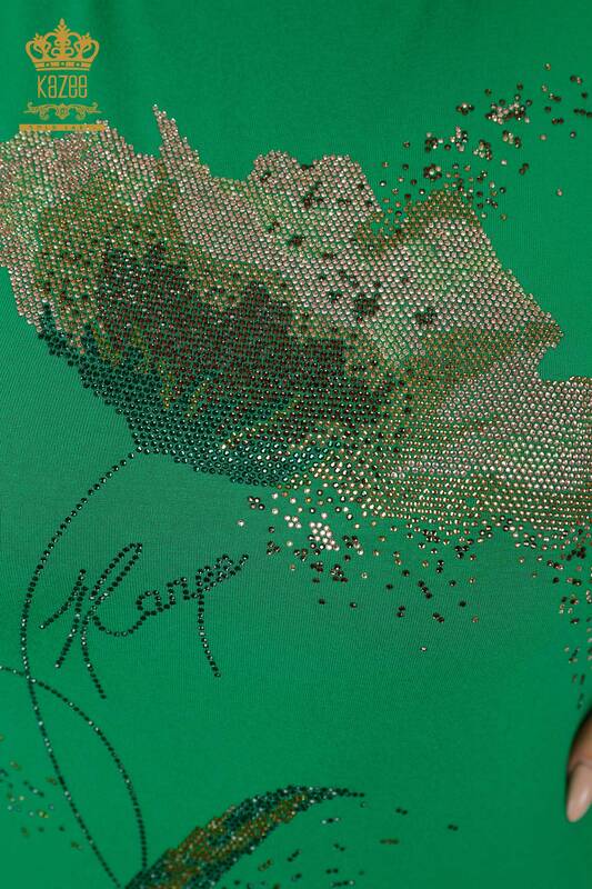 بلوزة نسائية - بنقشة ورود ملونة مطرزة باللون الاخضر - 78924 | كازي