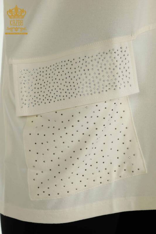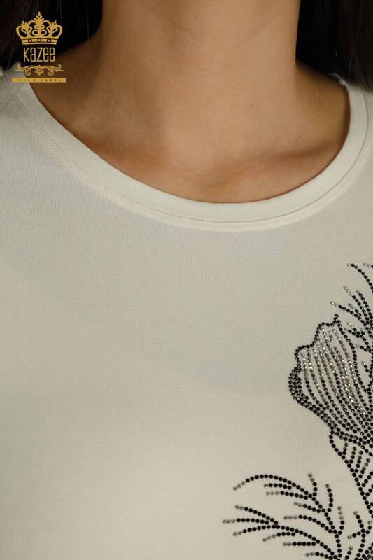 Venta al por mayor Blusa de Mujer Estampado de Flores Piedra Bordado Tul Detallado Crudo - 79298 | kazee