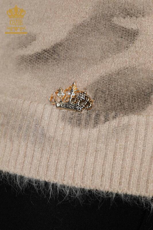 كنزة تريكو نسائية بالجملة شعار أنجورا منقوشة بيج - 18991 | كازي