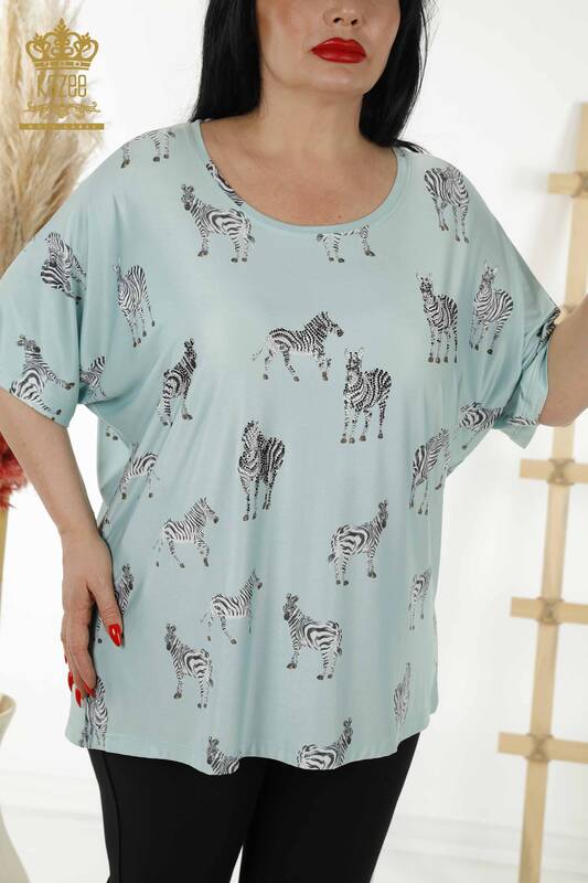 بلوزة نسائية - بأكمام قصيرة مطرزة بأحجار الزيبرا - 77690 | كازي