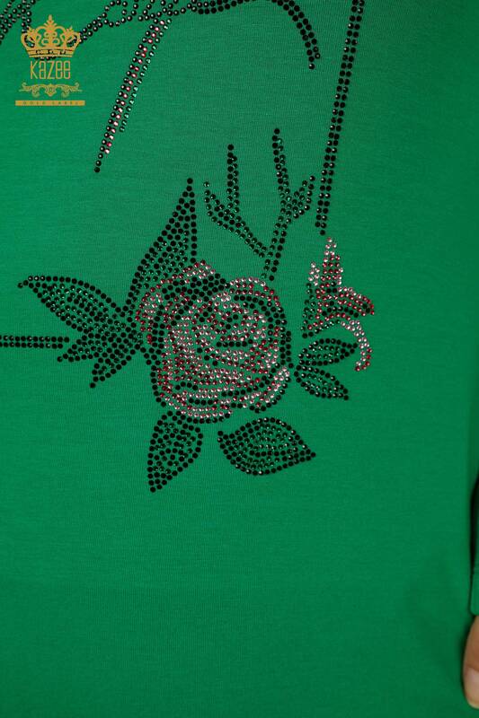 بلوزة نسائية - بنمط مورد - مطرزة باللون الاخضر - 79042 | كازي