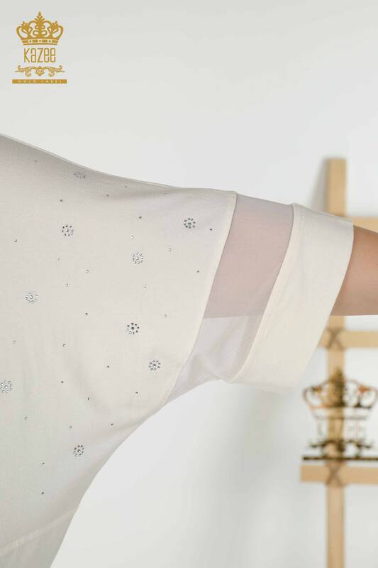 بلوزة نسائية - بأكمام قصيرة مطرزة بنمط الأزهار - 79087 | كازي