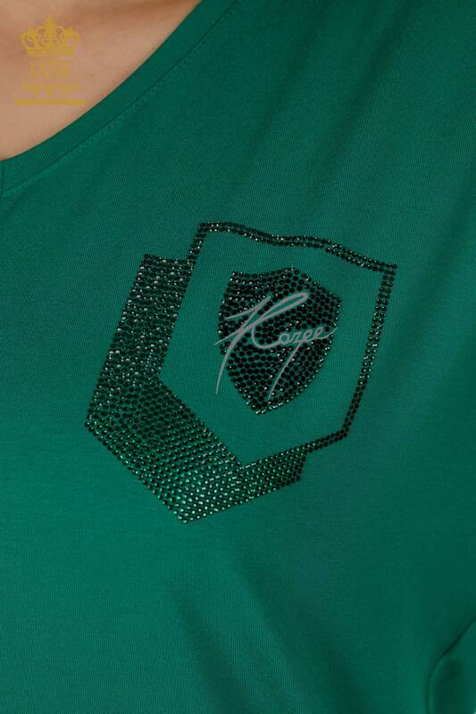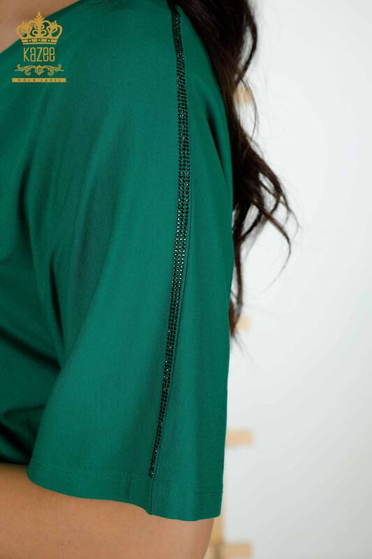 بلوزة نسائية بالجملة مطرزة بأحجار الجيوب باللون الأخضر - 77487 | كازي