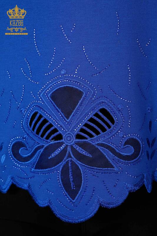 بلوزة نسائية بالجملة مطرزة بأحجار تول ومفصلة بياقة على شكل V بيج - 77927 | كازي