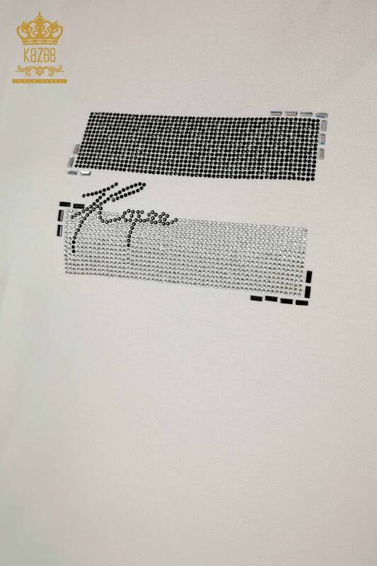 بلوزة نسائية بأكمام قصيرة مطرزة بأحجار كريمة - 79349 | كازي