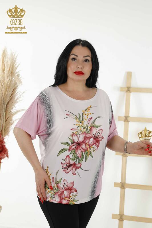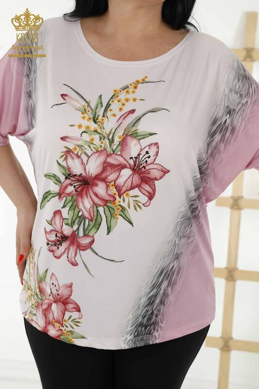 بلوزة نسائية - بأكمام قصيرة مطرزة بأحجار الزهرية - 77769 | كازي