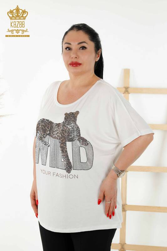بلوزة نسائية - مزينة بنمط النمر - مطرزة باللون البيج الفاتح - 77713 | كازي