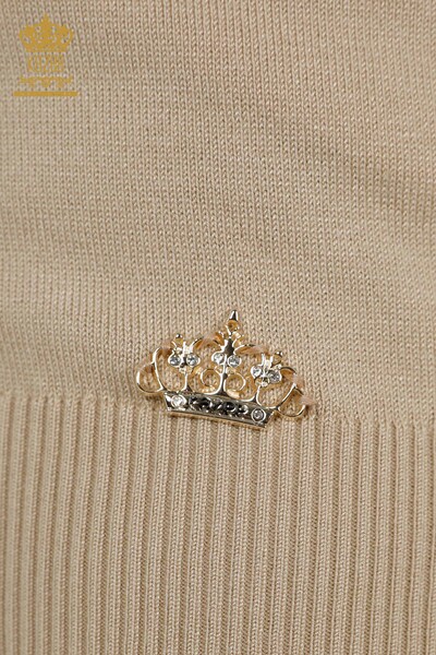 كنزة تريكو نسائية بالجملة موديل أمريكي بشعار أساسي بيج فاتح - 15943 | كازي