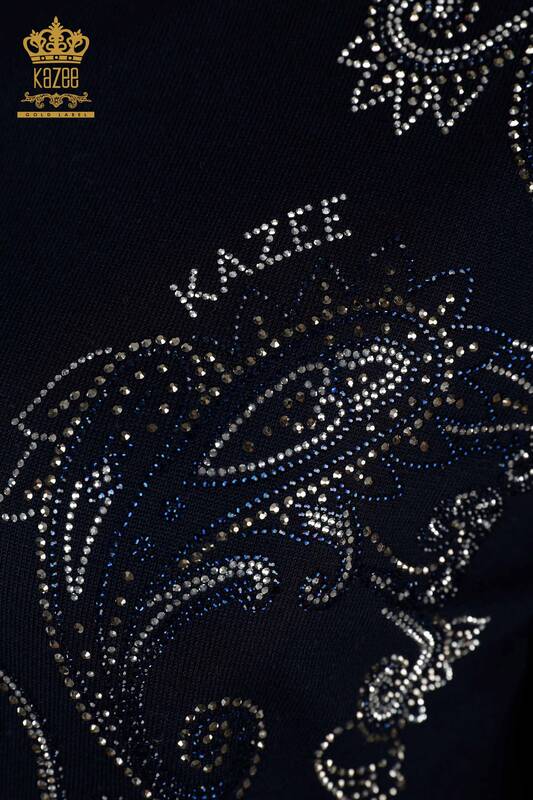 كنزة تريكو نسائية - مزخرفة بأحجار الكريستال ، كحلي - 30013 | كازي