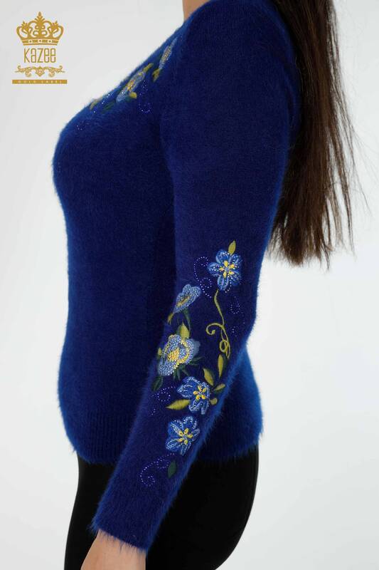 تريكو للنساء بالجملة كنزة صوفية مطرزة بأحجار الزهرة الأنجورا - 18917 | كازي
