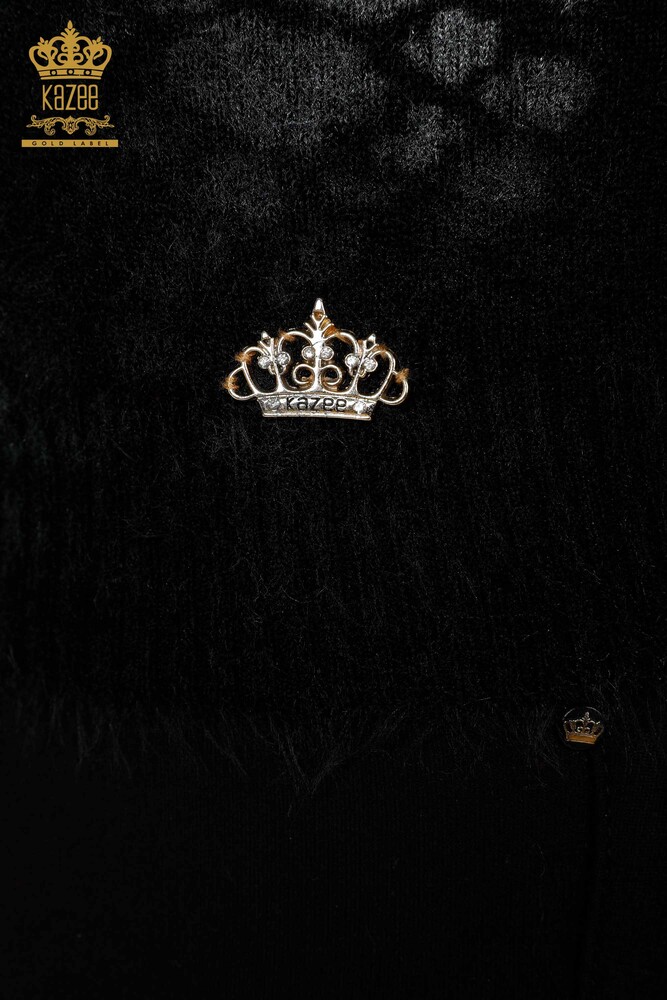 جاكيت تريكو نسائي بالجملة بنمط أنجورا أسود - 18983 | كازي