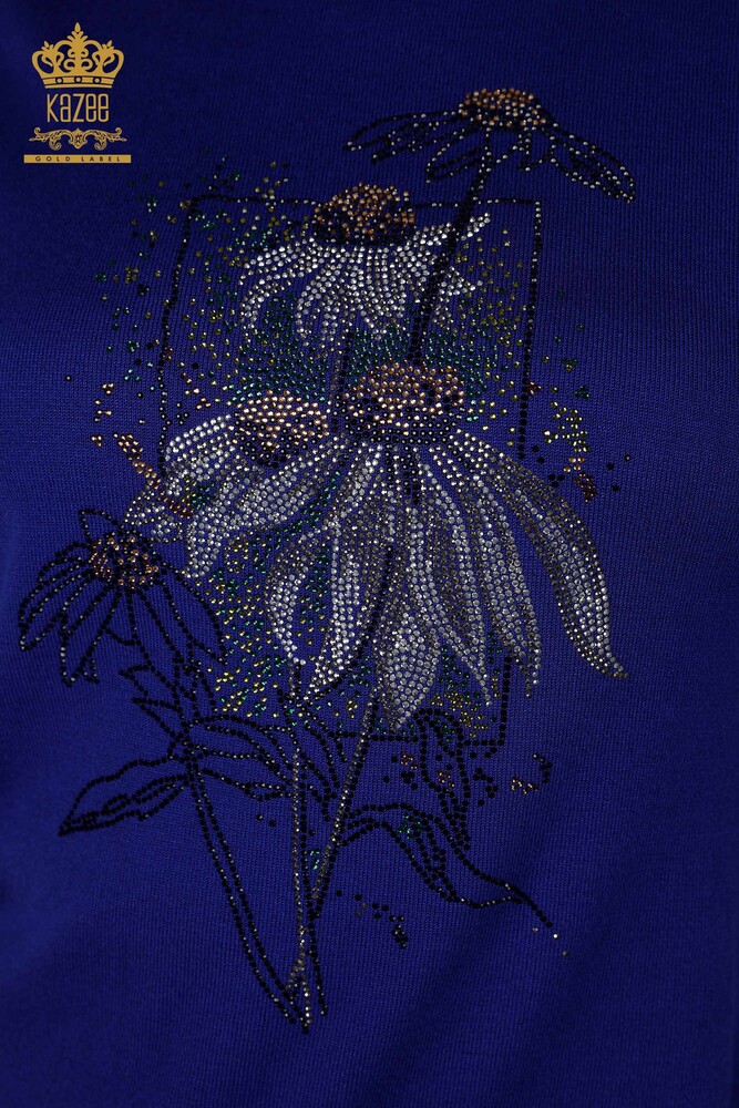 سترة نسائية تريكو نسائية بأكمام قصيرة مزخرفة بالزهور مطرزة بأحجار الزينة - 16963 | كازي