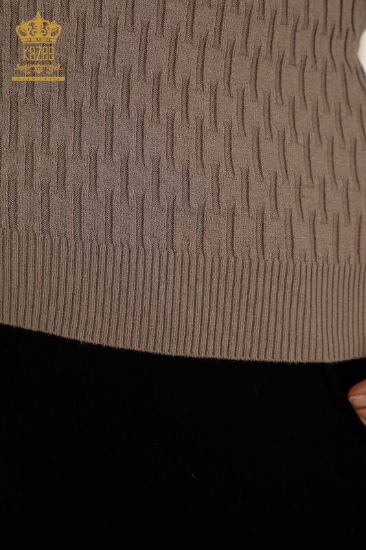 تريكو للنساء بالجملة سترة عالية الياقة منسوجة ذاتي المنك - 30338 | كازي
