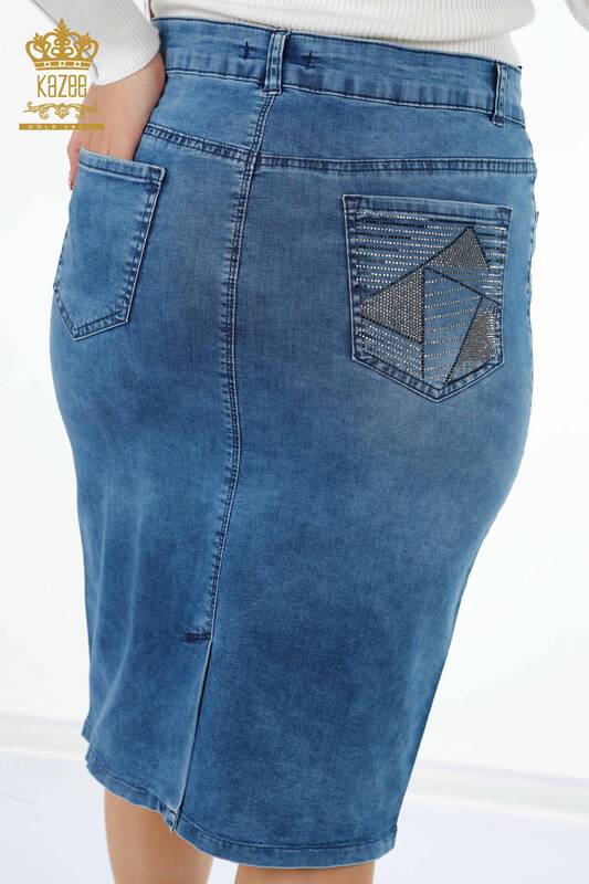 تنورة نسائية من الدنيم - جانبية مقلمة مطرزة بالأحجار - 4184 | كازي