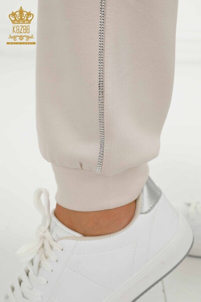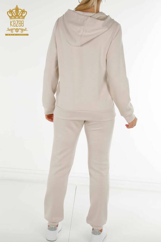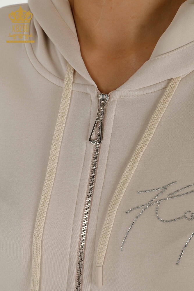 طقم رياضي نسائي بالجملة حجر مطرز بقلنسوة وسحاب حجري - 20414 | كازي