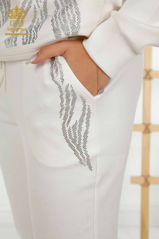 طقم رياضي نسائي بالجملة مطرز بالحجر وجيب بقلنسوة إكرو - 17566 | كازي