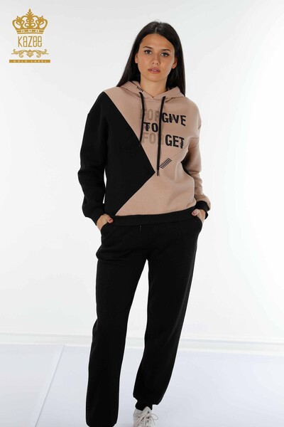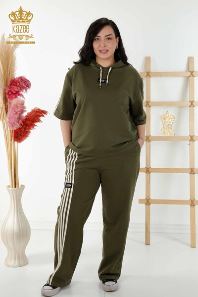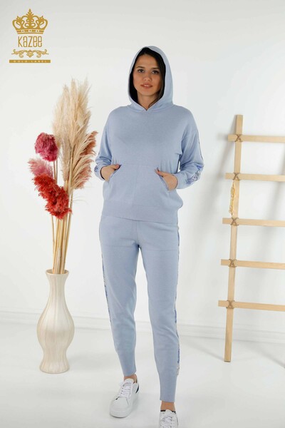 طقم رياضي نسائي بالجملة بجيب مطرز بالحجر مسحوق - 17598 | كازي