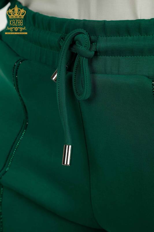 الجملة طقم رياضي نسائي مقنع انغلق حجر مطرز أخضر - 17618 | كازي