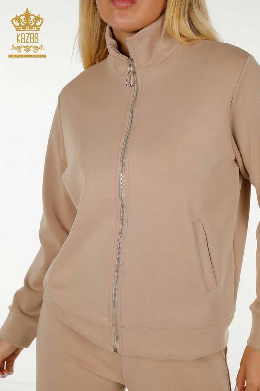 طقم رياضي نسائي بجيوب بسحاب بيج - 17619 | كازي