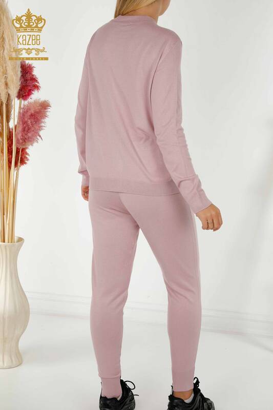 طقم رياضي نسائي بالجملة بسحاب جيب مطرز بالحجر - 16276 | كازي