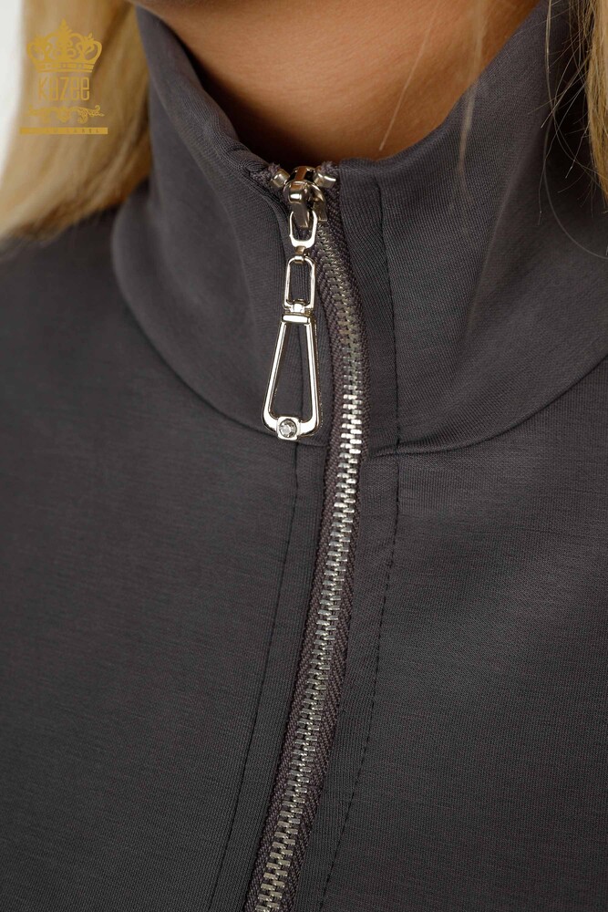 طقم رياضي نسائي بجيب سحاب رمادي - 17619 | كازي