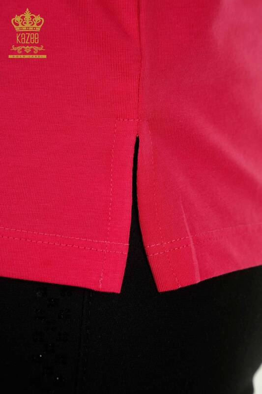 الجملة بلوزة نسائية قصيرة الأكمام طاقم الرقبة الفوشيه - 79563 | كازي