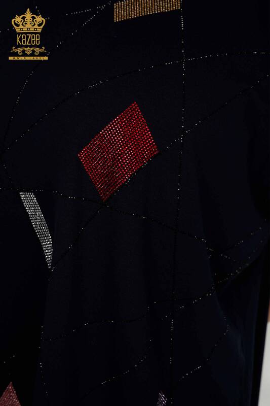 بلوزة نسائية - برقبة على شكل V ومطرزة بأكمام قصيرة - كحلي - 79320 | كازي