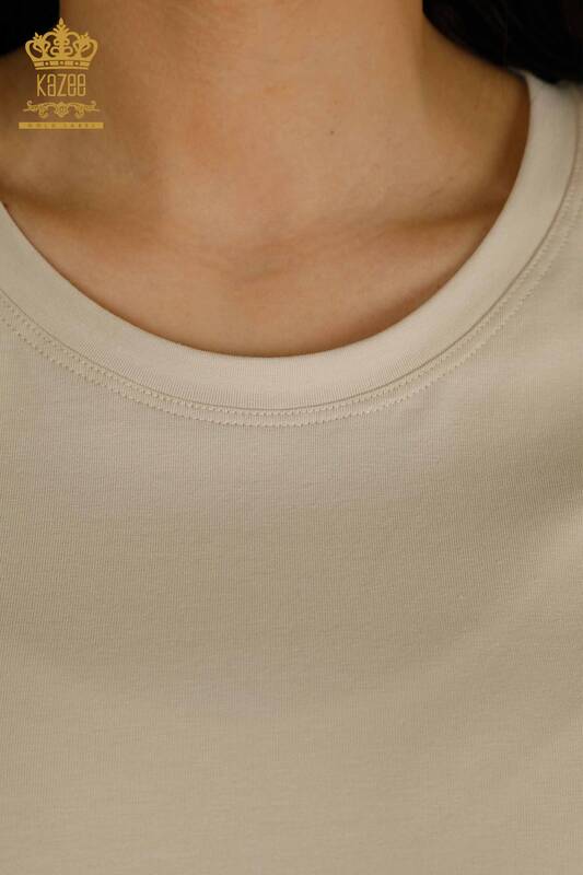 الجملة بلوزة نسائية كم قصير الرقبة الطاقم بيج فاتح - 79563 | كازي