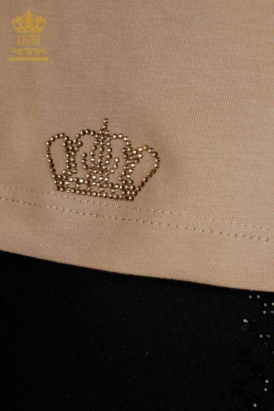 الجملة بلوزة نسائية كم قصير الرقبة الطاقم بيج داكن - 79563 | كازي