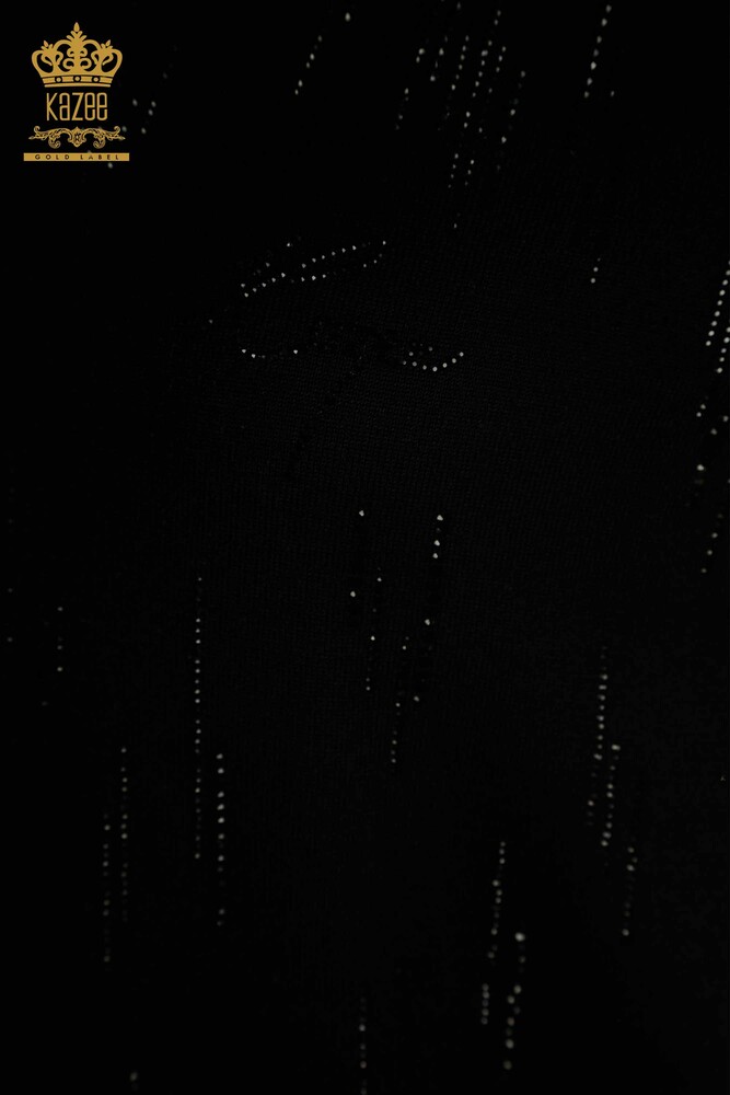 الجملة المرأة سترة تريكو الوقوف الياقة حجر مطرز كم قصير أسود - 30599 | كازي