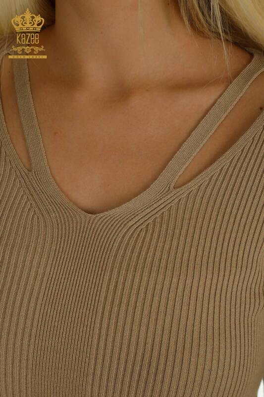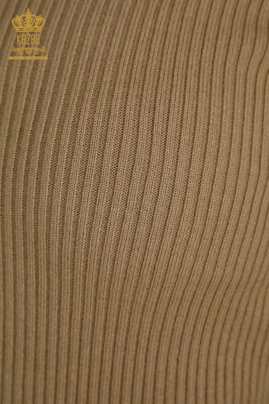 الجملة سترة تريكو نسائية مع تفاصيل الياقة البيج الأساسي - 30392 | كازي