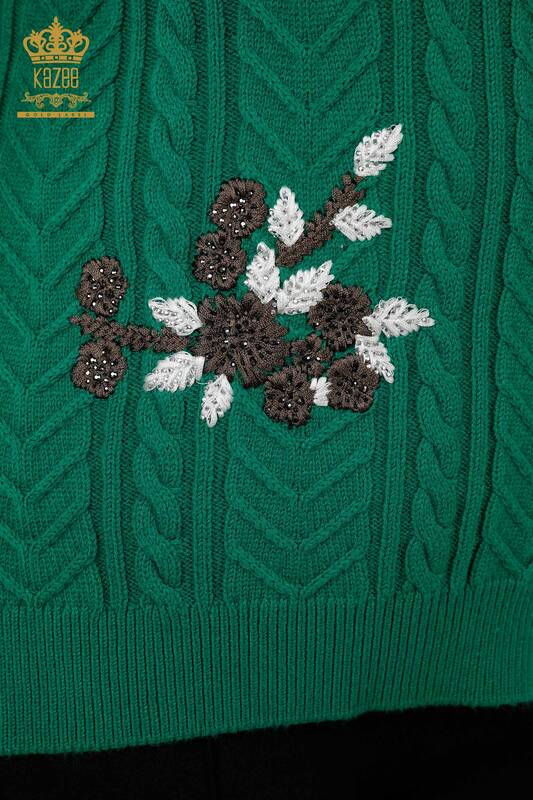 كنزة نسائية - بنمط مورد - مطرزة باللون الاخضر - 30179 | كازي
