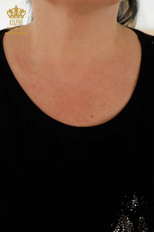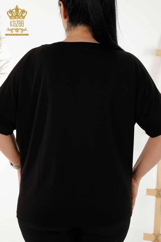 بلوزة نسائية - بنمط مورد - مطرز اسود - 79121 | كازي