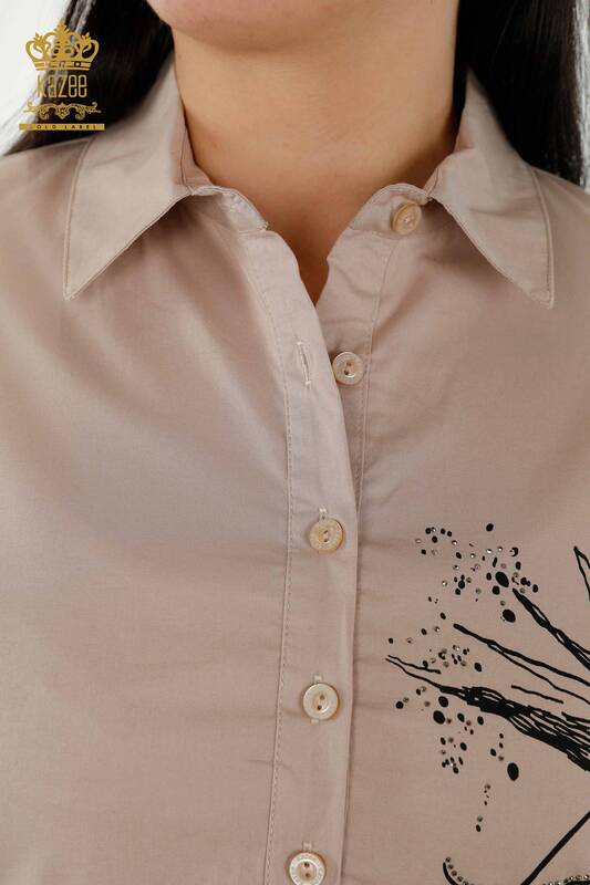 فستان نسائي - مزخرف بأزرار - بيج - 20324 | كازي