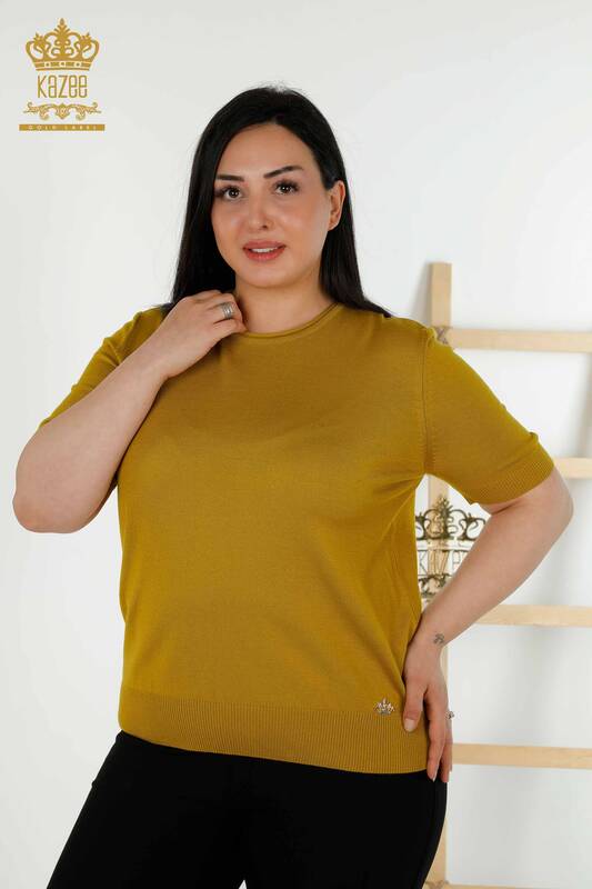 كنزة تريكو نسائية للبيع بالجملة موديل أمريكي بشعار الخردل - 16271 | كازي