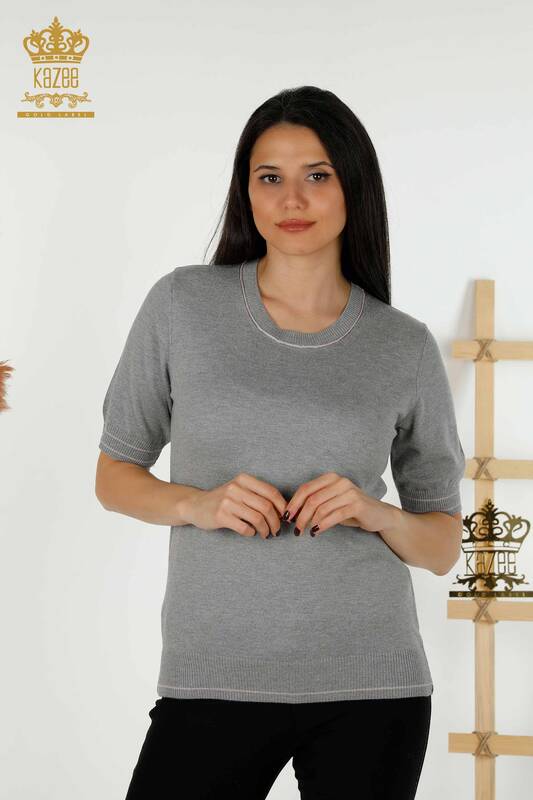 كنزة تريكو نسائية بالجملة موديل أمريكي رمادي أساسي - 30110 | كازي