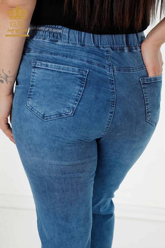 بنطلون جينز نسائي مع جيوب مطرزة بالاحجار بخصر مطاطي ازرق - 3696 | كازي