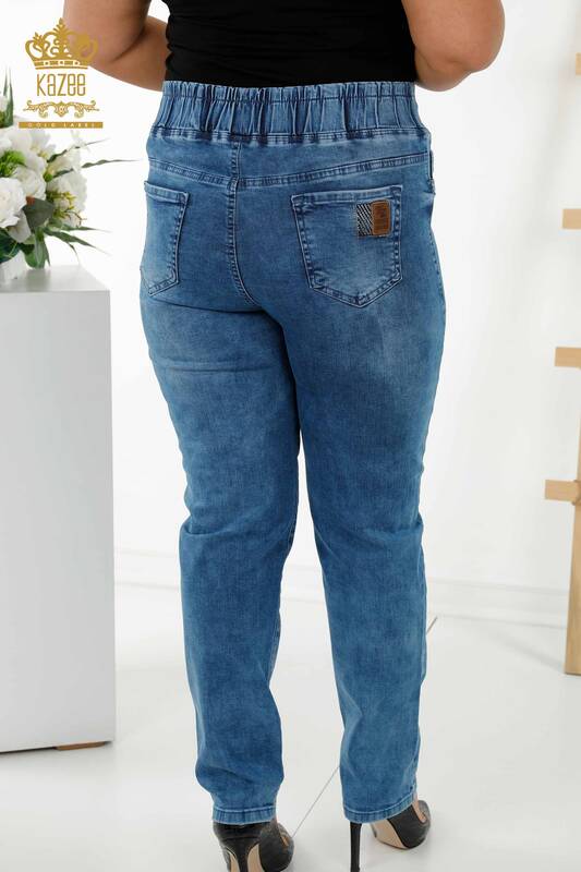بنطلون جينز نسائي أزرق بجيب مطاطي - 3698 | كازي