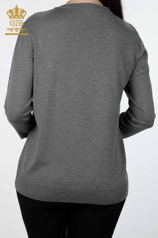 تريكو نسائي بالجملة بياقة على شكل V فسكوز أساسي لامع بأكمام طويلة - 15316 | كازي