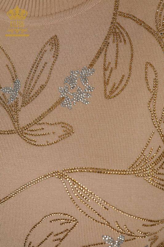 كنزة تريكو نسائية بالجملة بأحجار الكريستال المزخرفة بأحجار الكريستال بيج - 30240 | كازي