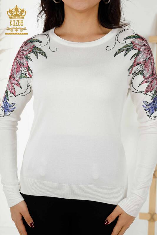 سترة كتف نسائية تريكو نسائية بالجملة مطرزة بالأحجار باللون البني الفاتح - 30188 | كازي