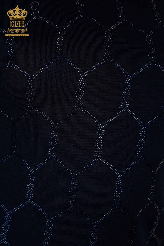 كنزة تريكو نسائية بالجملة مطرزة بحجر كحلي منقوش - 30317 | كازي